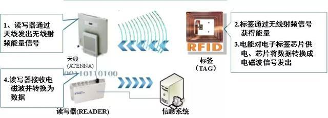 RFID的工作原理很簡單:標簽進入磁場后,讀寫器會感應到標簽信號,標簽通過無線射頻信號獲得能量(無源標簽或被動標簽)或標簽主動發(fā)送某一頻率的信號(有源標簽或主動標簽),然后解讀器讀取電磁波并轉(zhuǎn)化為數(shù)據(jù),送至中央信息系統(tǒng)進行有關(guān)數(shù)據(jù)處理。
