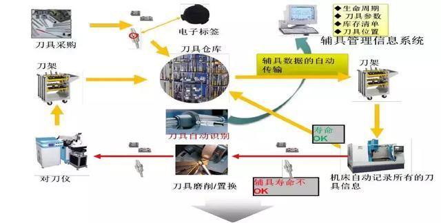 刀具管控的目的是實現(xiàn)對刀具全生命周期信息管理,及時的了解刀具的使用和庫存狀態(tài)和位置。在刀具采購入庫前,為刀具加裝電子標簽,作為刀具的唯一身份識別信息。在刀具的調(diào)度和使用過程中,通過及時采集刀具的信息,能在系統(tǒng)中清楚的了解刀具是否已經(jīng)上刀,具體對應的機床以及使用的周期和時長等。通過及時跟蹤刀具位置狀態(tài)、使用狀態(tài),企業(yè)能及時的了解刀具磨損情況并進行更換,保證刀具的使用安全。