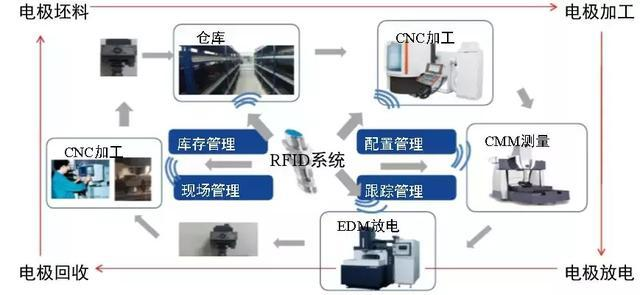 具體實現(xiàn)方式是對每個電極管安裝RFID標簽,從晶體管入庫、生產(chǎn)、測量、放電的全流程進行瓜農(nóng)空。通過對庫存、配置、現(xiàn)場的數(shù)據(jù)采集,從電極的設計延伸到制造、測量和使用的全過程,使數(shù)據(jù)和制造無縫交互,實現(xiàn)全流程的自動化,無人化